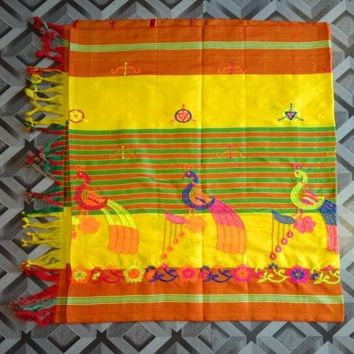 Kids Lumang Phuta Saree from Upal brand can be worn on a special ocassions and during festival. Lumang Phuta Saree brings you years back tradition to our modern day fashion. Complete you Saree look with pair of stud earrings, pair of bangles, pendant necklace from Upal brand to complete your traditional look.