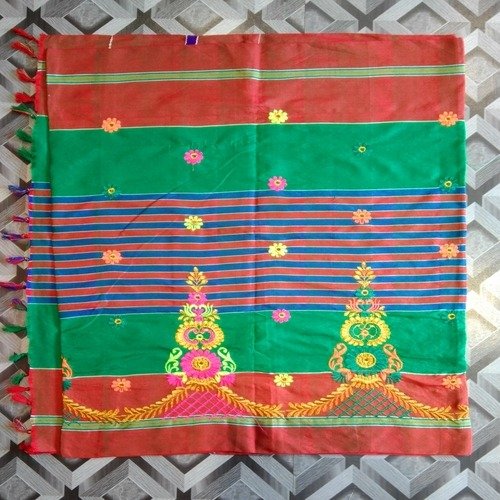 Kids Lumang Phuta Saree from Upal brand can be worn on a special ocassions and during festival. Lumang Phuta Saree brings you years back tradition to our modern day fashion. Complete you Saree look with pair of stud earrings, pair of bangles, pendant necklace from Upal brand to complete your traditional look.