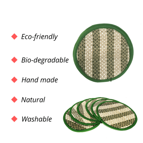 Hand crafted jute coasters set is an excellent choice for your dining table. This natural jute heat insulation pads decorate your dining table and give it an exotic look. Use coasters at multiple places for your home and office decor. Use it for dining purpose, fruit mat, tea pot mat, tea/coffee mat, glass mat or serving ice-cream these coasters. Package content: 6 pcs hand crafted round coasters set.